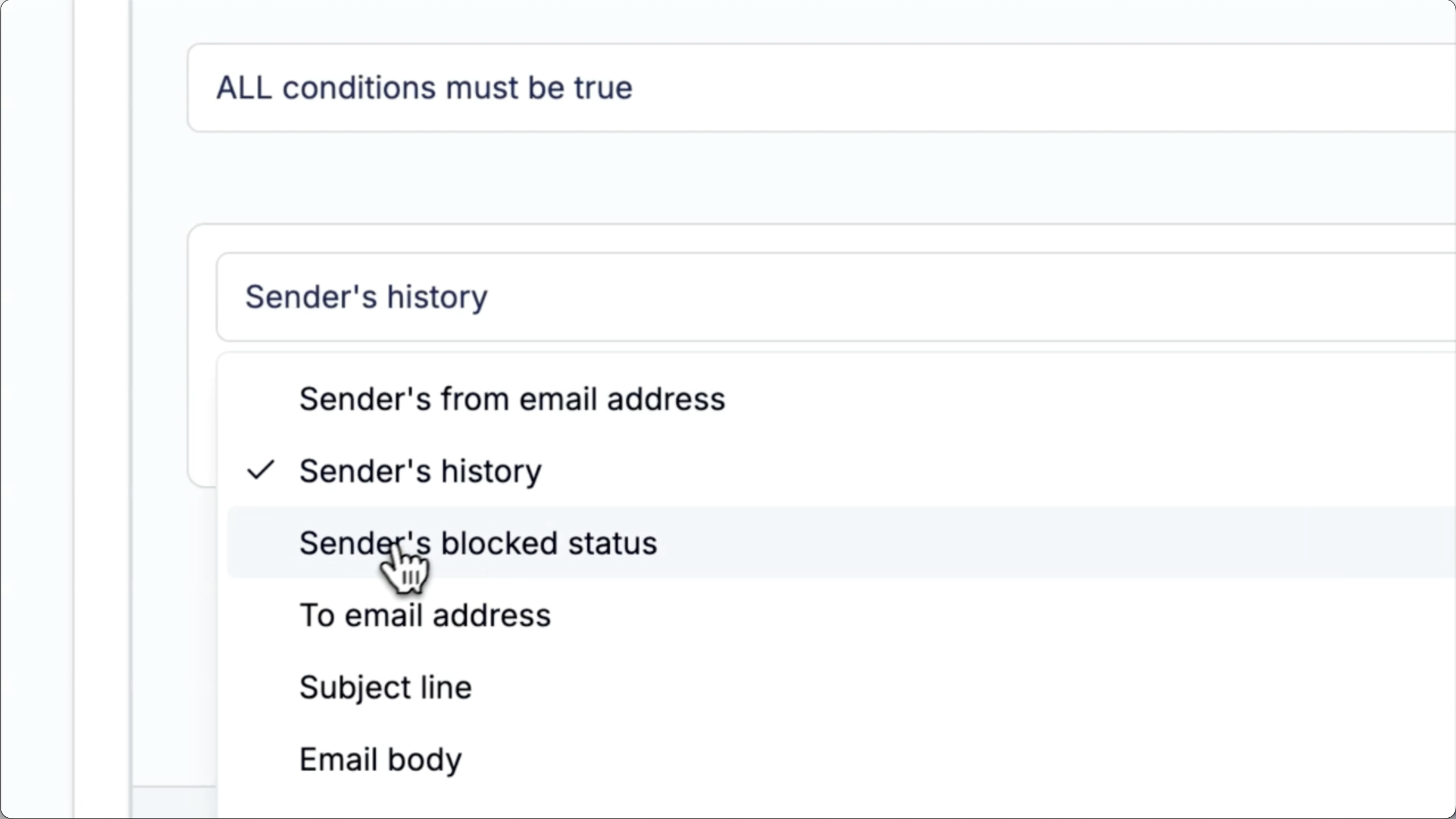 FilterHawk filters by sender history—new senders, frequency, blocked status. Full control.